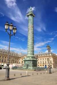 Place Vendôme was built on the orders of Louis XIV as a grandiose setting that would embody absolute power in the very heart of Paris. Napoleon replaced the statue of the king, dismantled in 1792, with a bronze column made from 1,200 enemy canons. During the Second Empire, however, the octagonal square, a marvel of classical urban design, gradually became a showcase for luxury goods rather than political power. The world’s great jewelry brands have turned Place Vendôme and the adjoining Rue de la Paix into one continuous stream of window displays filled with sparkling diamonds, rubies, and emeralds